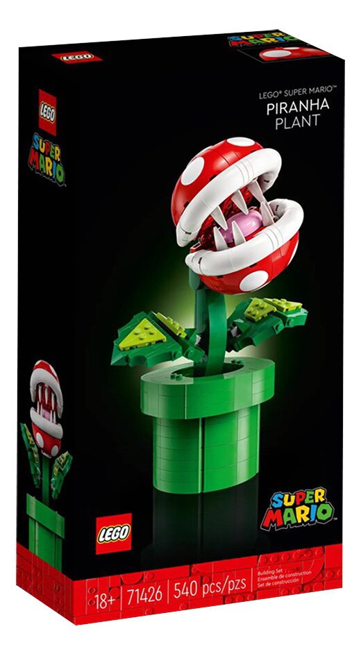 Neem de tijd om jezelf onder te dompelen in een ontspannende bouwuitdaging met deze verstelbare LEGO® Super Mario™ Piranha Plant (71426) figuur. Maak de onderscheidende kenmerken van een Piranha Plant na en verstel zijn kop, bek, stengel en bladeren. Zet hem in de bouwbare buis en je hebt een leuke blikvanger voor thuis of op kantoor. (Let op: dit model heeft geen digitale speelfuncties.)