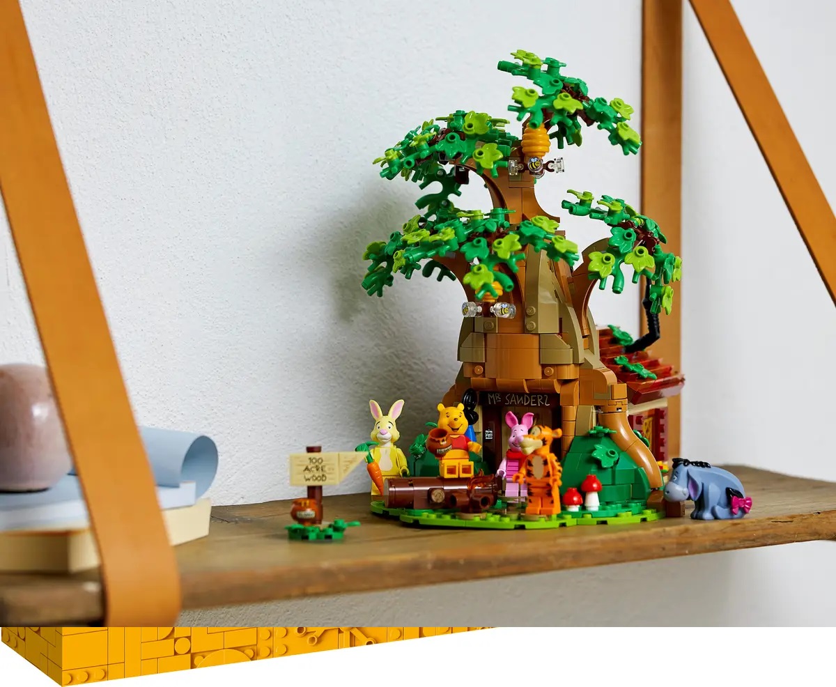 Haal mooie jeugdherinneringen op met deze LEGO® Ideas set (21326) met Disney’s Winnie de Poeh en een prachtige LEGO versie van zijn huis onder een grote eik in het Honderd Bunderbos. Ideaal om alleen of samen met je gezin te bouwen. De achterkant kan open zodat je alle authentieke details binnenin goed kunt zien, waaronder Poehs bouwbare leunstoel, de Pooh-Coo klok, Poohsticks, honingpotten en nog veel meer. Je kunt ook nog eens de bijen rond de bijenkorven aan de boomtakken laten vliegen, net als in de verhalen.